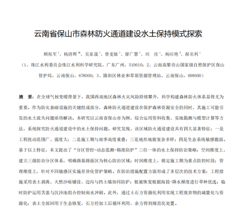 创新中心发表论文《云南省保山市森林防火通道建设水土保持模式探索》-2025-06-13