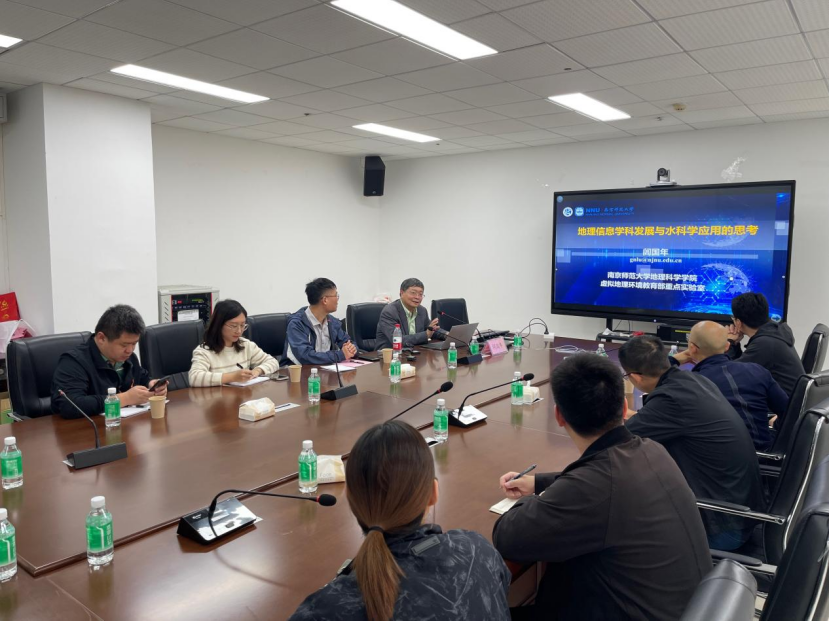 会上,苏波副总工对闾国年教授的来访表示欢迎。随后,闾国年教授深入阐述了GIS的发展历程及其内在规律、地理学的发展需求以及地理信息科学的未来趋势。他强调了地理学发展的初衷与目标,并详细介绍了“信息七要素”和“地理描述七维度”这一新型地理信息概念模型。闾教授明确指出,地理信息的转换是非守恒的,并提出了物理世界、人文世界和信息世界三元构成的世界地理学理念。此外,他还探讨了地理信息科学在水科学应用方面的关键作用,指出利用高效的GIS技术可以更加有效地进行水资源管理、洪水预测和水质监测,为水科学研究提供了坚实的数据支持。