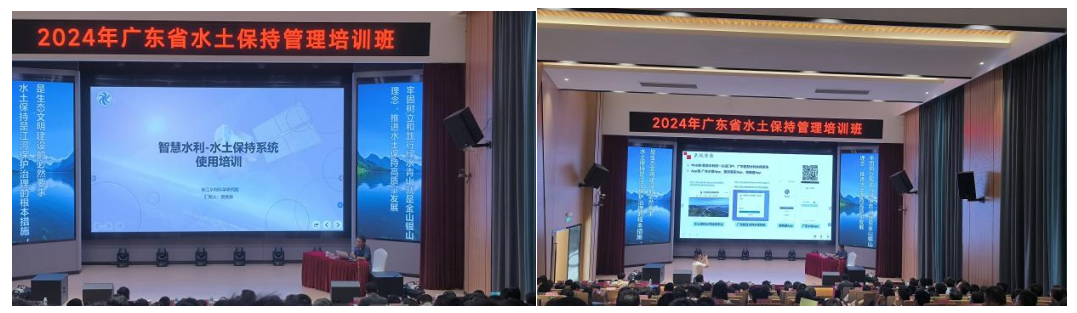 遥感智能应用创新中心 2024年6月13日,2024年广东省水利厅主办的水土保持管理培训班在广州工商学院三水校区举办,来自广东省各级水行政主管部门的水土保持管理人员和技术骨干300余人参加。曾麦脉博士作为特邀讲师,围绕“智慧水利—水土保持系统”进行了系统讲解。